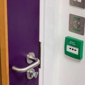 Formica’s Cassis – a stylish muted purple colour – was selected for the high-pressure laminate doors, in keeping with the centre’s contemporary interior design. Manufactured from sustainably sourced FSC® certified timber, the doors were supplied with fully compatible ironmongery, including door furniture, closing devices and locks.