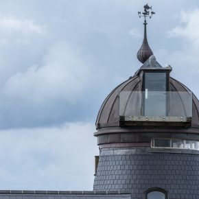 This part of the roof also features a striking onion-shaped finial. Expertly crafted by ELC Roofing, the finial is produced out of a patchwork of small pieces of soft copper, topped off with a fish that acts as a weather vane and includes stunning marble eyes.