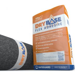 Safeguard Europe’s Drybase Flex Membrane System is entirely drill-free for the least disruptive installation possible. Plugs aren’t necessary thanks to Drybase Flex Adhesive. Ensure you’re getting an authentic Drybase product with the logo stamped on the grey fleece layer.