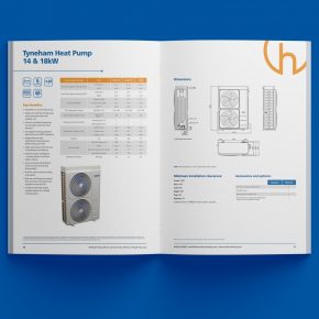 The new Tyneham heat pump brochure provides an in-depth look at the key benefits of each individual model in the range. Distinct icons highlight each model’s ErP rating, coefficient of performance (COP), weights and dimensions, whilst easy-to-read detailed technical information is displayed in chart format. In addition, each model in the range comes with minimum installation clearances and a list of suitable accessories and options available.