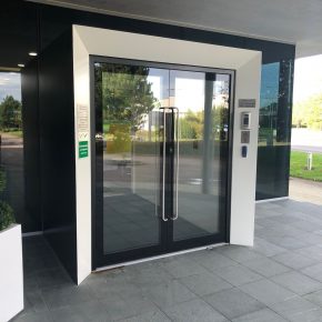 Jack Aluminium’s JD47 system has once again showed its incredible versatility, being used for a bonded double door set at the headquarters of one of the world’s biggest pharmaceutical companies.