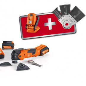 Fein’s cordless Multi-Talent comes in at an RRP of £196.95, with a free lamp and 3 free blades (worth £67.90).