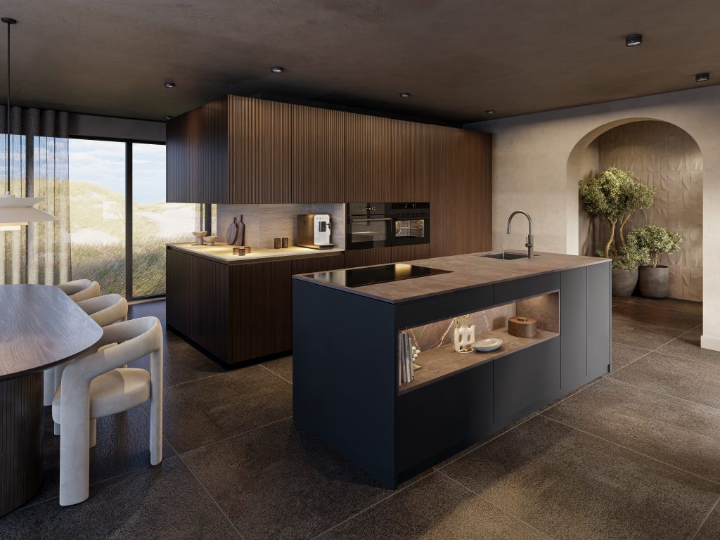 Today’s fashion encompasses lines, ribs, the travertine-look and a penchant for the modular. This new kitchen, answering modern tastes, is ideal for new builds and refits alike; it’s compact, modern, and stylish while space optimisation is simple.