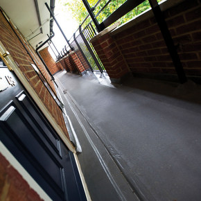 PMMA has proved to be advantageous for situations where the contractor’s access to the area to be treated may be restricted, and a fast application is desirable. For example: communal walkways and stair wells within housing blocks frequently seen in urban areas, where residents require access to their home within an acceptable time period.