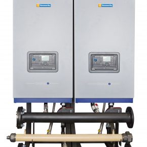It is available in five modules with outputs (@50/30°C) of 97, 116, 147, 196 and 254kW. Individual boiler modules can be pre-configured one, two or three high in 15 combinations up to 762kW output, making it a highly versatile and space saving solution. Hamworthy Heating’s latest product offering is the lightweight and compact Tyneham air source Heat Pump, which has a co-efficiency rating of performance (COP) of up to 4.85, to provide efficient, low-carbon heating.