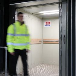 A trio of Stannah Goodsmaster CD goods-only lifts feature at the Yeovil branch of CLEAN Linen and Workwear.